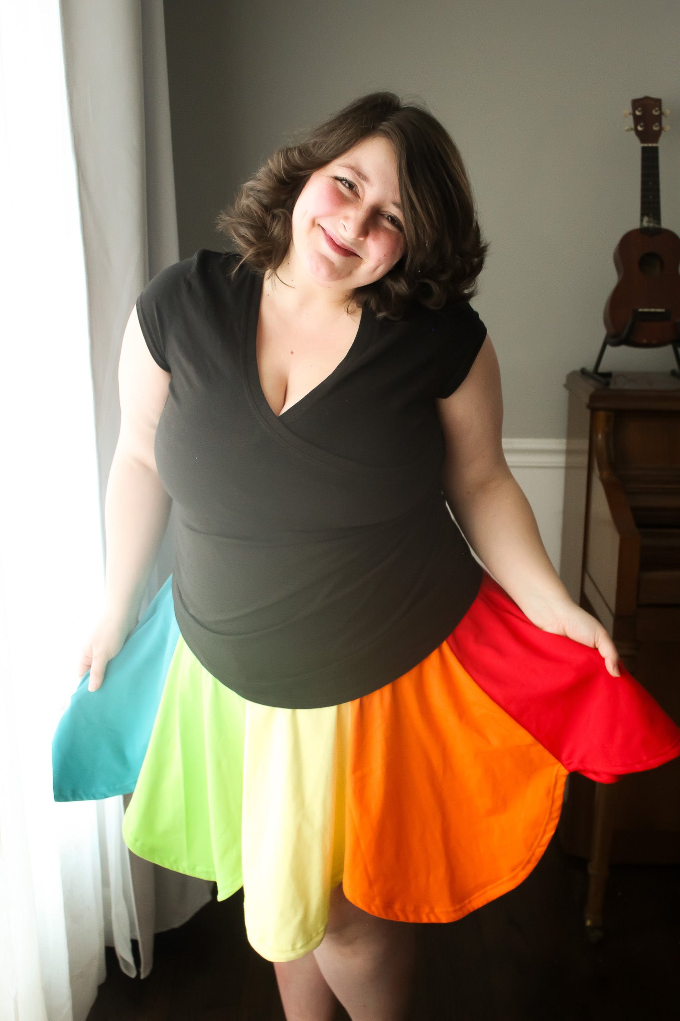 If using a woven fabric, the same principal applies. A lighter fabric (such as rayon challis) will drape and flow, while a more structured woven (quilting cotton, for example), will stand out away from the body.