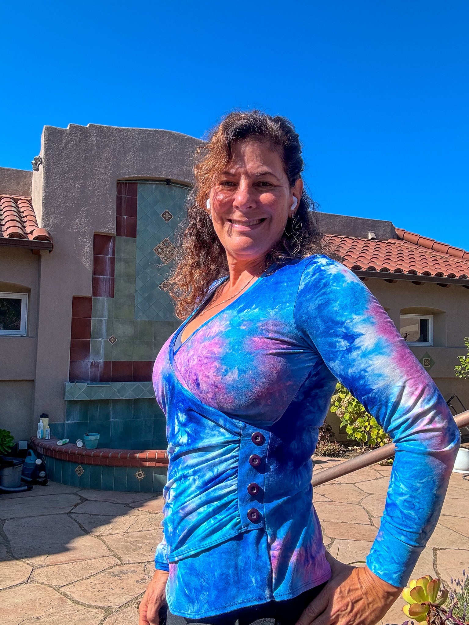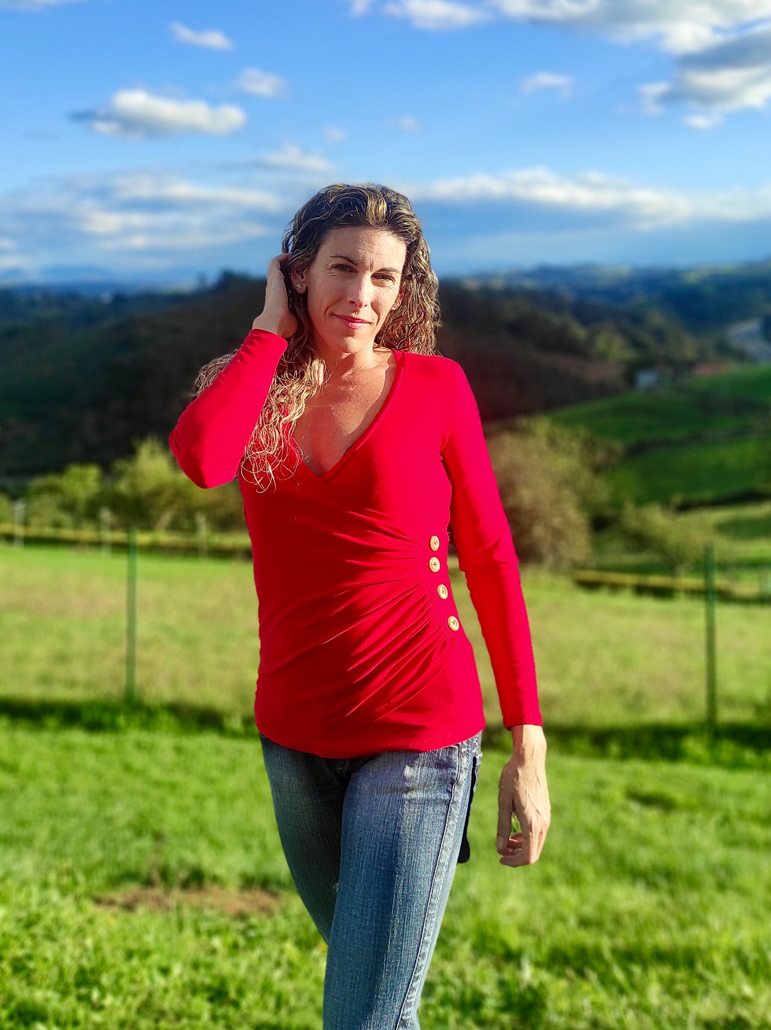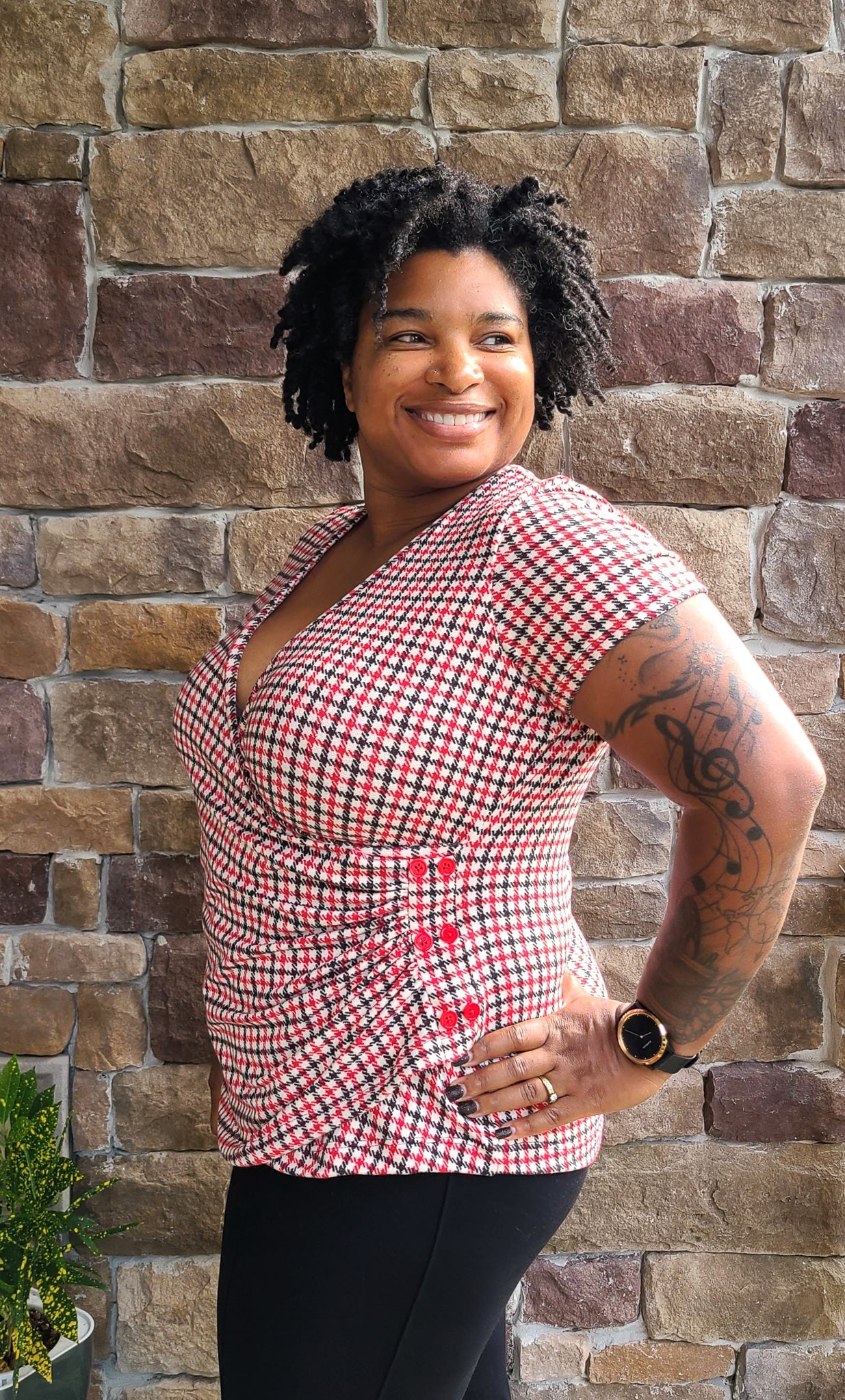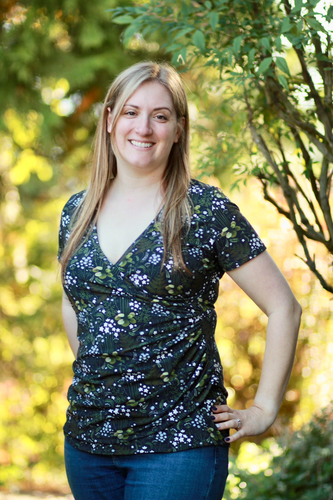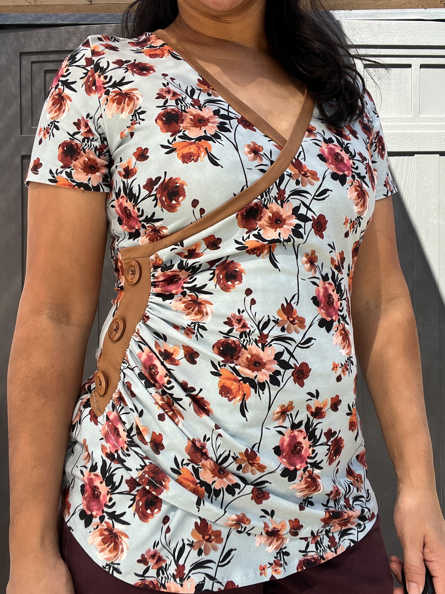 The Tansy Top is perfect for both casual and dressy occasions. Its sophisticated design pairs well with jeans or a skirt, while the flattering cross front detail and optional ruching add a touch of elegance. You can also give your top that something extra with a decorative button placket.